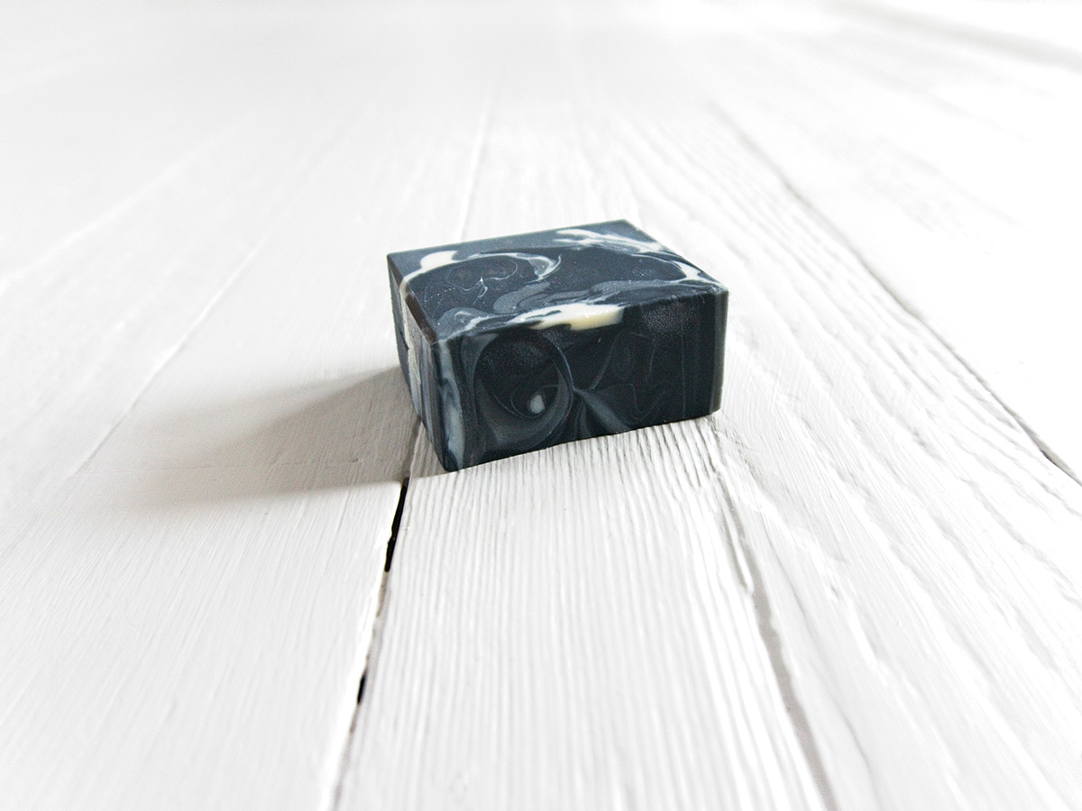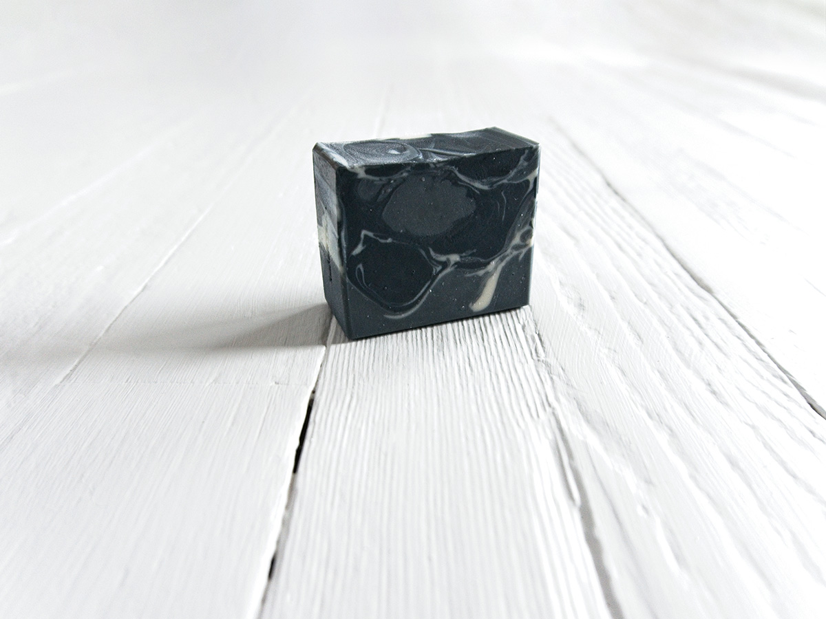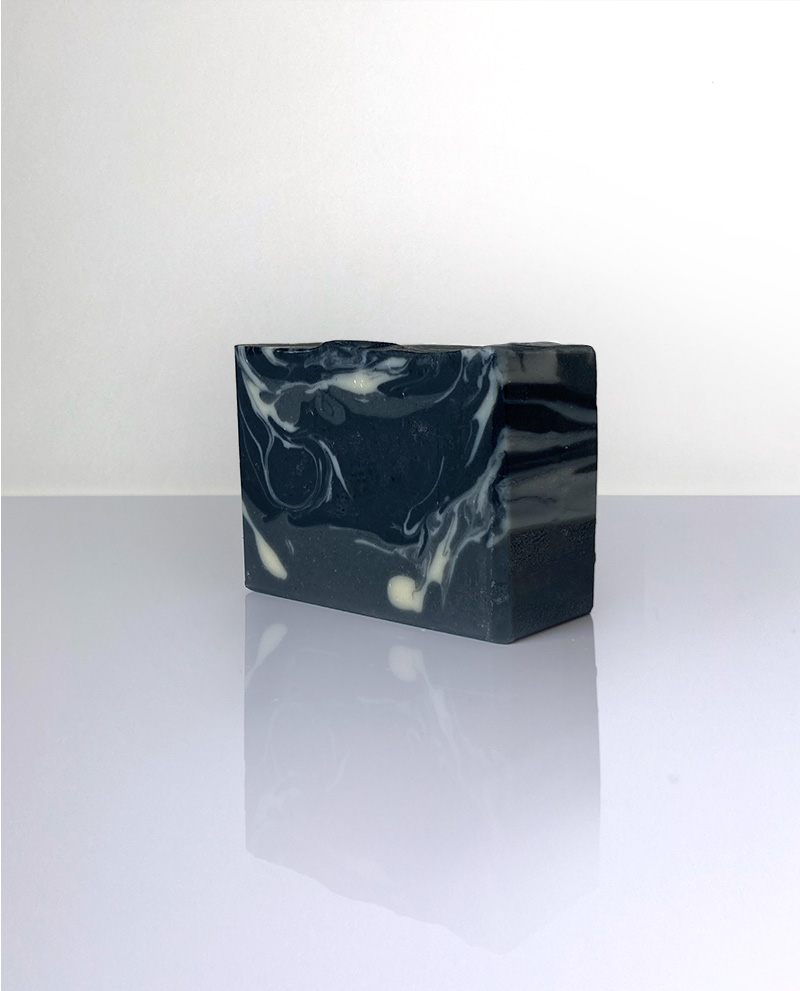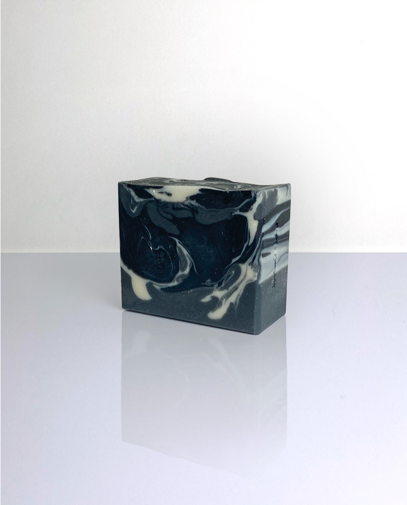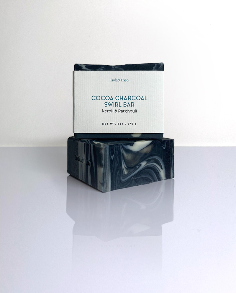 Modeled after our resident Egyptian Mau, Isola with smoky swirls of light and dark. The lightness of the fair white neroli flower is counterbalanced in note and in darkness to dark patchouli. The kissing cousin of the Oatmeal Shea Cocoa Bar (unscented with pencil thin lines of charcoal). This is highly detoxifying with far more charcoal, and a scent beloved by men and women.