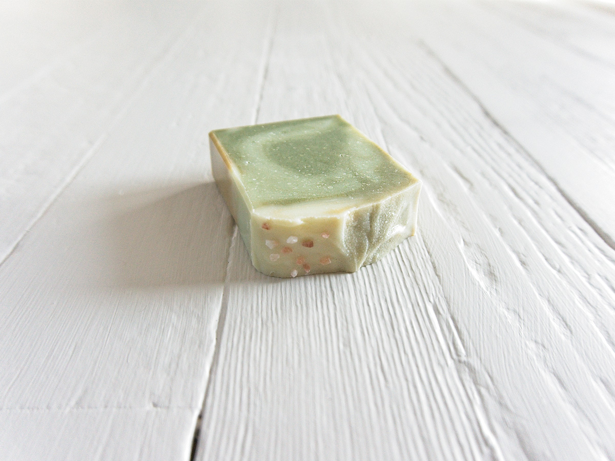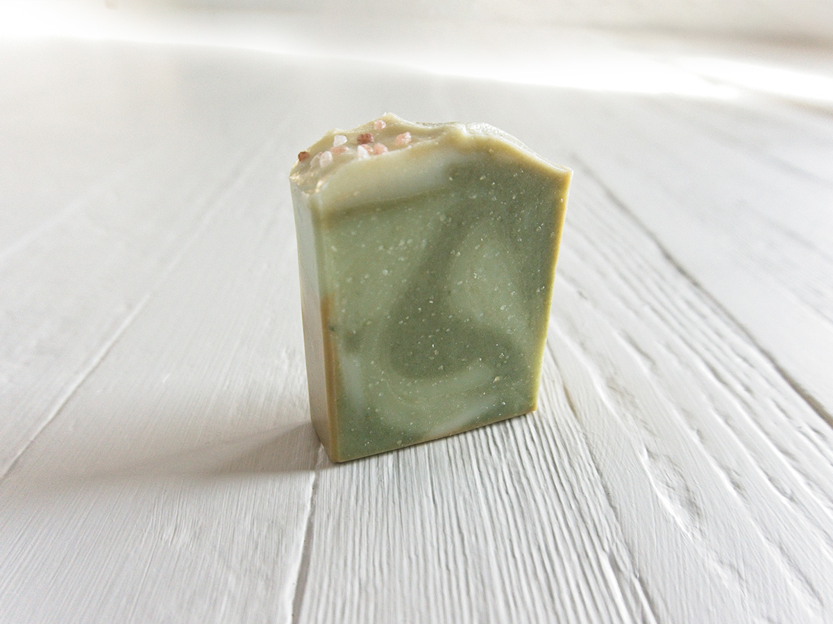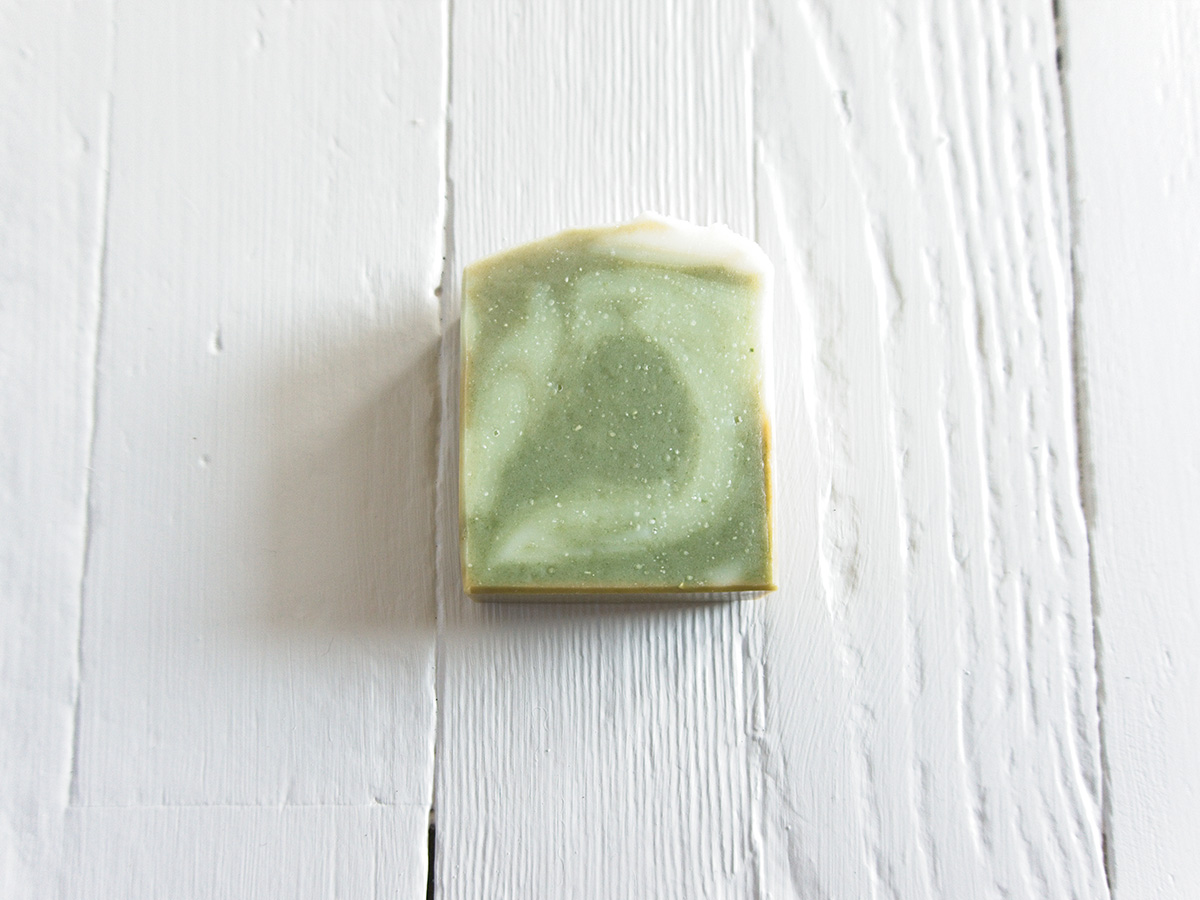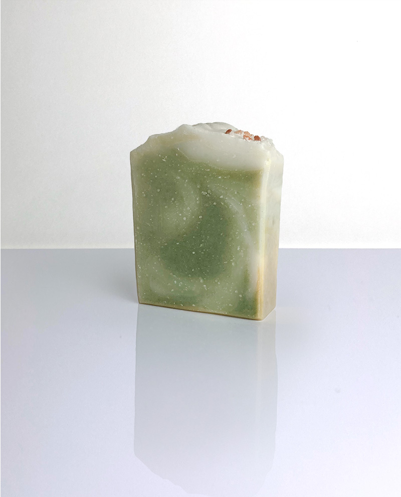 Hemp is the darling of many cosmetic products, and quite frankly, it’s one of our favorites to build skin strength. We use unrefined oils to retain as many nutrients and beneficial properties present in the plant. Hemp seed oil contains a 3:1 essential fatty acid profile of omega-6 (linoleic acid) to omega-3 (alpha-linolenic acid) respectively, optimal for retaining moisture and a stronger skin barrier. Green clay (sea clay) is wonderful for very sensitive skin because of the fine particle size with elastic properties, smoothing skin’s appearance and alleviating irritation. Alumina and silica (not to be confused with silicone) naturally present in kaolin, aid in exfoliation, absorption of oils and increased collagen production. Their adsorption properties bond excess skin cells and sebum to these particles and lift away grime to clear pores. Spirulina algae is packed with antioxidants and vitamins, and is responsible for water retention for mature skin. Visually, it is the deeper olive color in this bar. Herbal tea scents with jasmine is one of our stronger scents, both fresh and lively.